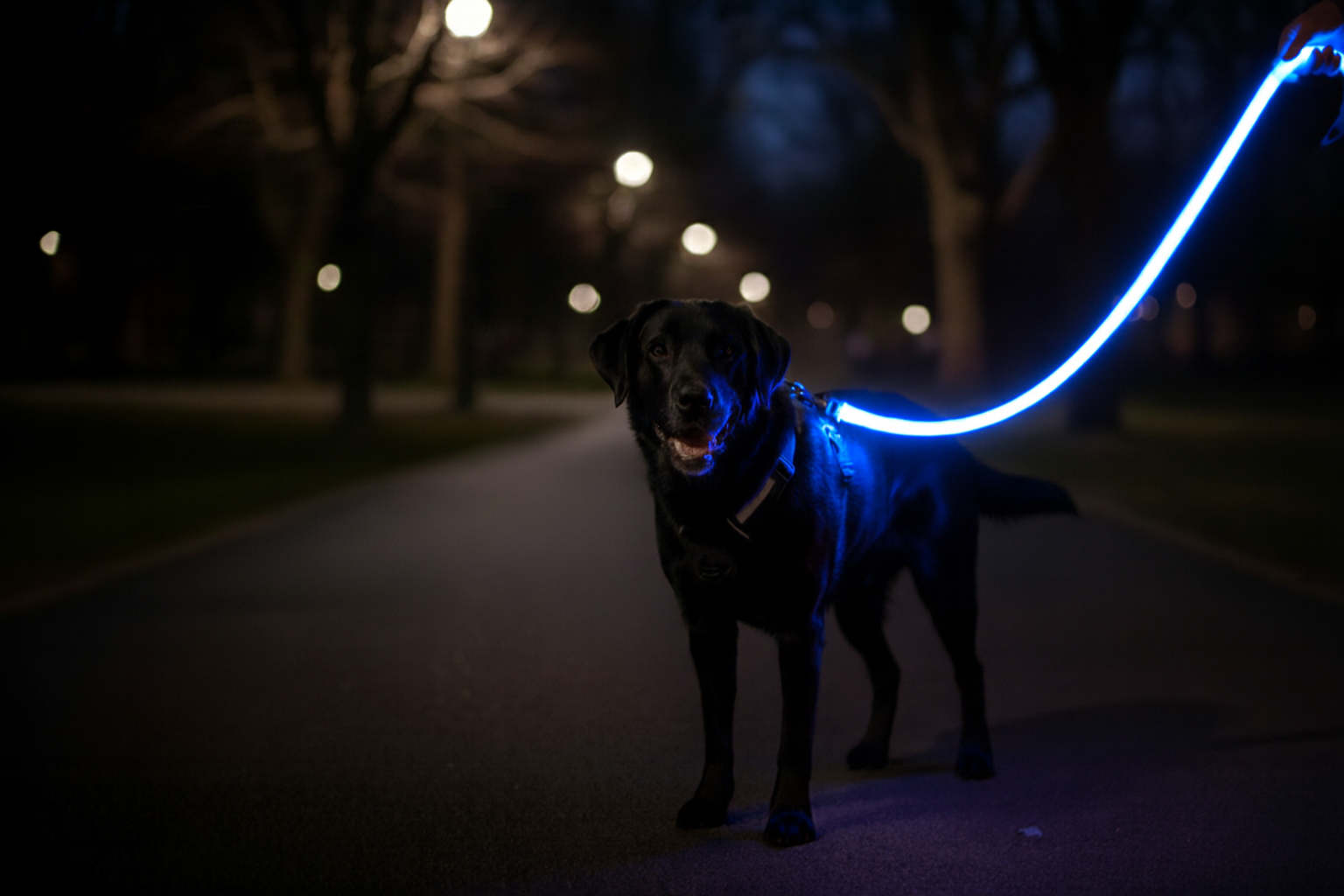 Futuristic design meets fashion: our LED leashes glow with neon blue and purple accents, elevating your dog’s style on night walks.