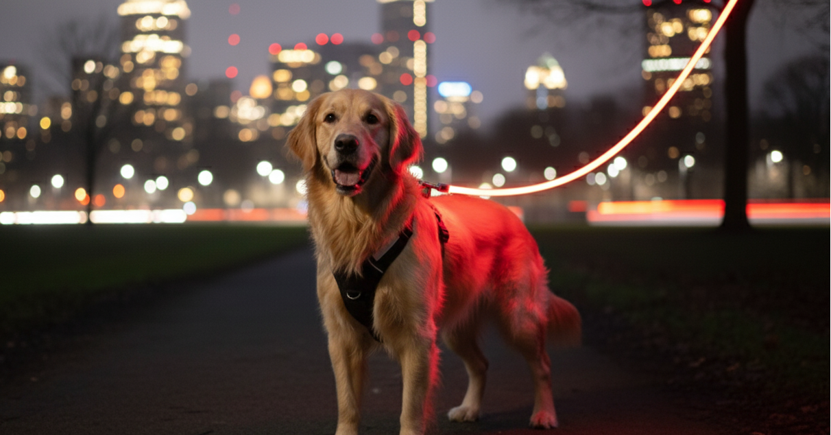 High-visibility LEDs and optical fibers provide 360° illumination, keeping you and your dog safe on night walks. Rechargeable battery offers 6–8 hours of light and is water‑resistant for all-weather durability.